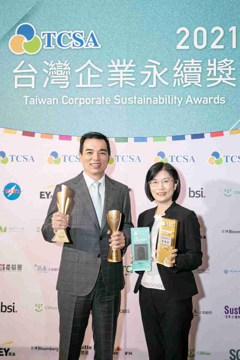 达在台湾永续奖所评比环境、、、、社会、、治理等各面向的永续绩效均获高度肯定 (左:z6mg·人生就是博光电总经理暨营运长柯富仁,,右:z6mg·人生就是博光电永续长古秀华)