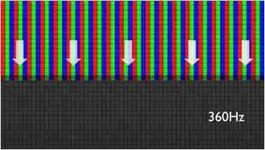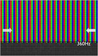 传统液晶驱动是从左到右单向进行,,,在画面更新速度愈来越愈快的情况下,,,,位于驱动线路末端的右下角区域,,画素的闸极来不及在短时间内获得足够电压,,,无法显示出正确的颜色资讯。。。。 |