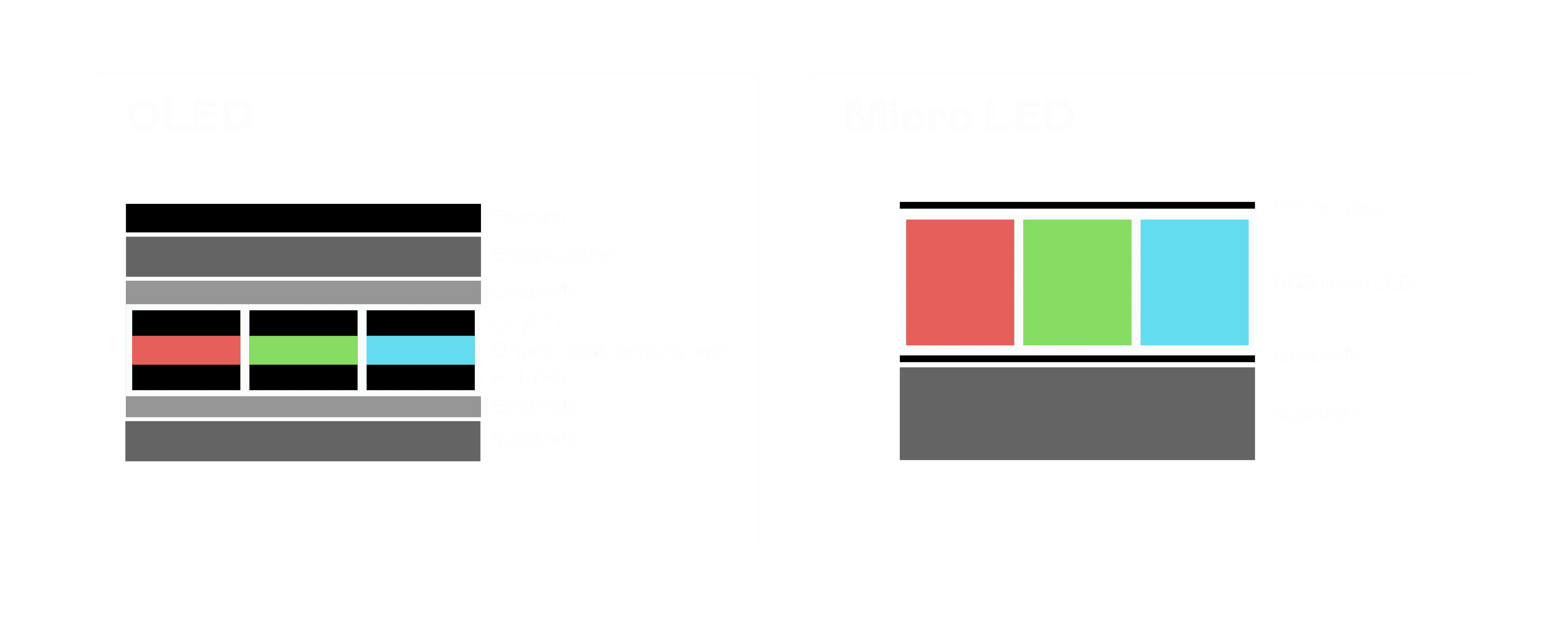 以 LED 做为显示画素,,,可让 LED 的发光效率发挥到极致,,,从而让显示器具备优异的亮度表现,,,,不论是在户外或室内,,,均具备出众的显示效果。。同时,,,与使用有机材料的 OLED 相比,,,,LED 具备更稳定、、、、寿命更长的特性,,不仅不会有画面烙印问题,,,,而且更不容易出现故障、、、、坏点。。